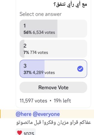 ولازال التصويت جاريا إلى هذه اللحظة فيما تظهر المعطيات الأولية في صبيحة اليوم أن هناك تنافسا بين رأيين الأول يدعو لعدم الخروج والثاني يدعو إلى الخروج الخميس مع تفادي الأماكن الشعبية.