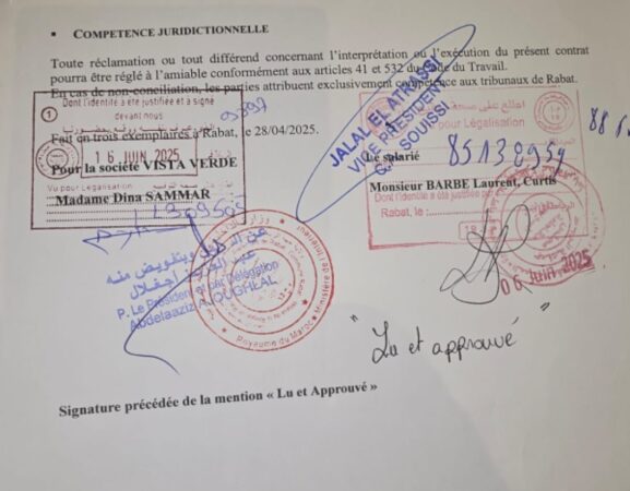 خلف هذا الخلاف البسيط، يكمن ما هو أخطر، فمصادر مطلعة أكدت أن العقد الرابط بين الطرفين لم يحصل على تأشيرة وزارة التشغيل كما تفرض المادة 516 من مدونة الشغل، التي تنص على وجوب حصول أي مشغل يرغب في تشغيل أجنبي على ترخيص مسبق من السلطة الحكومية المكلفة بالتشغيل في شكل تأشيرة توضع على العقد.