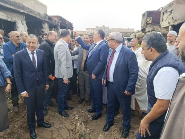 زار عبد اللطيف وهبي رئيس جماعة تارودانت رفقة عامل الإقليم، صبيحة السبت، سوق « جنان الجامع » الذي حولته النيران إلى رماد، الشهر الماضي.