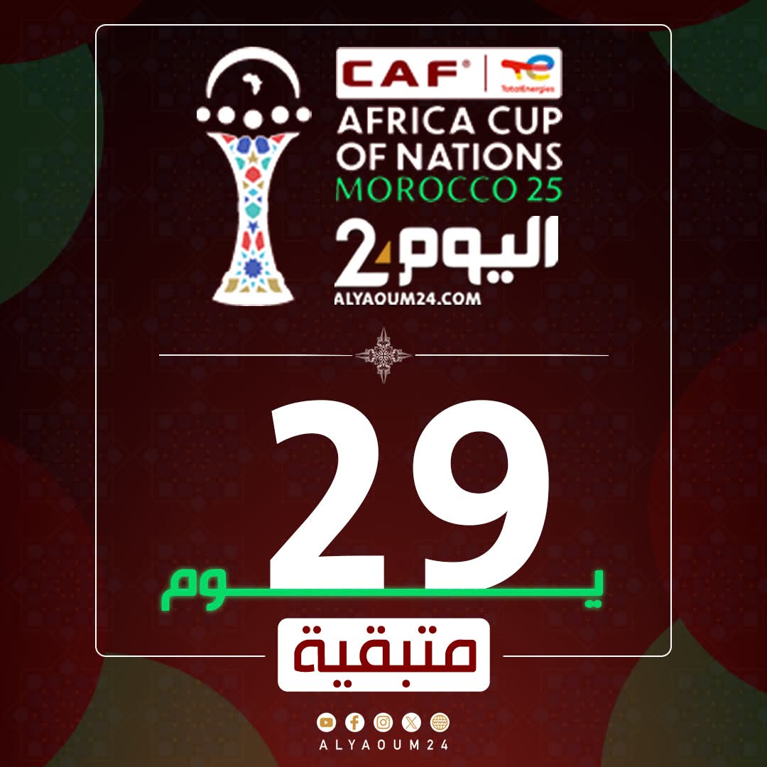 بدأ العد العكسي لاستضافة المغرب لنهائيات كأس الأمم الإفريقية، حيث ستنطلق المباريات يوم الأحد 21 دجنبر 2025، كما كان أعلن الاتحاد الإفريقي لكرة القدم، في اجتماع مكتبه التنفيذي الأخير في مراكش، ما يعني أنه تبقى 29 يوما فقط « أقل من شهر » على انطلاقة العرس الإفريقي.